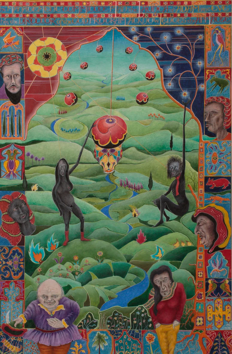 The Management Committee and the Secretary do not look very happy about this Program but the Director delights in the applause. Eve is reaching for the apple which sits on the serpent's head. The expressions of the protagonists are ambiguous.