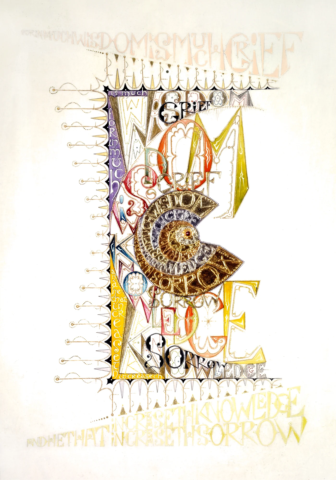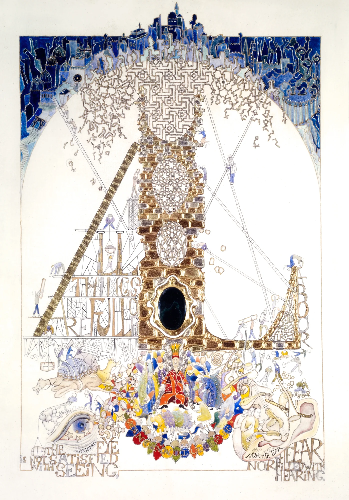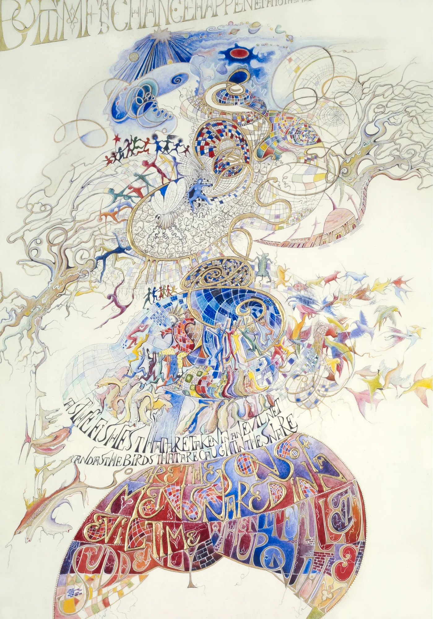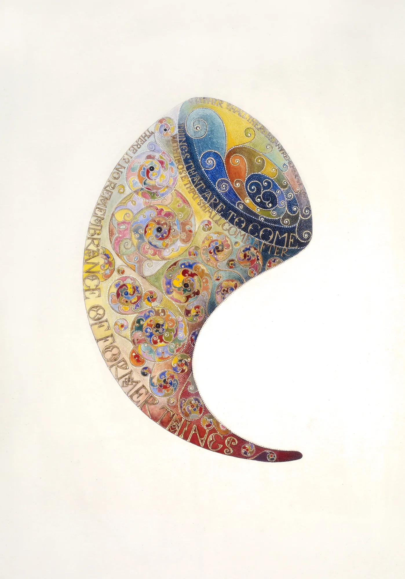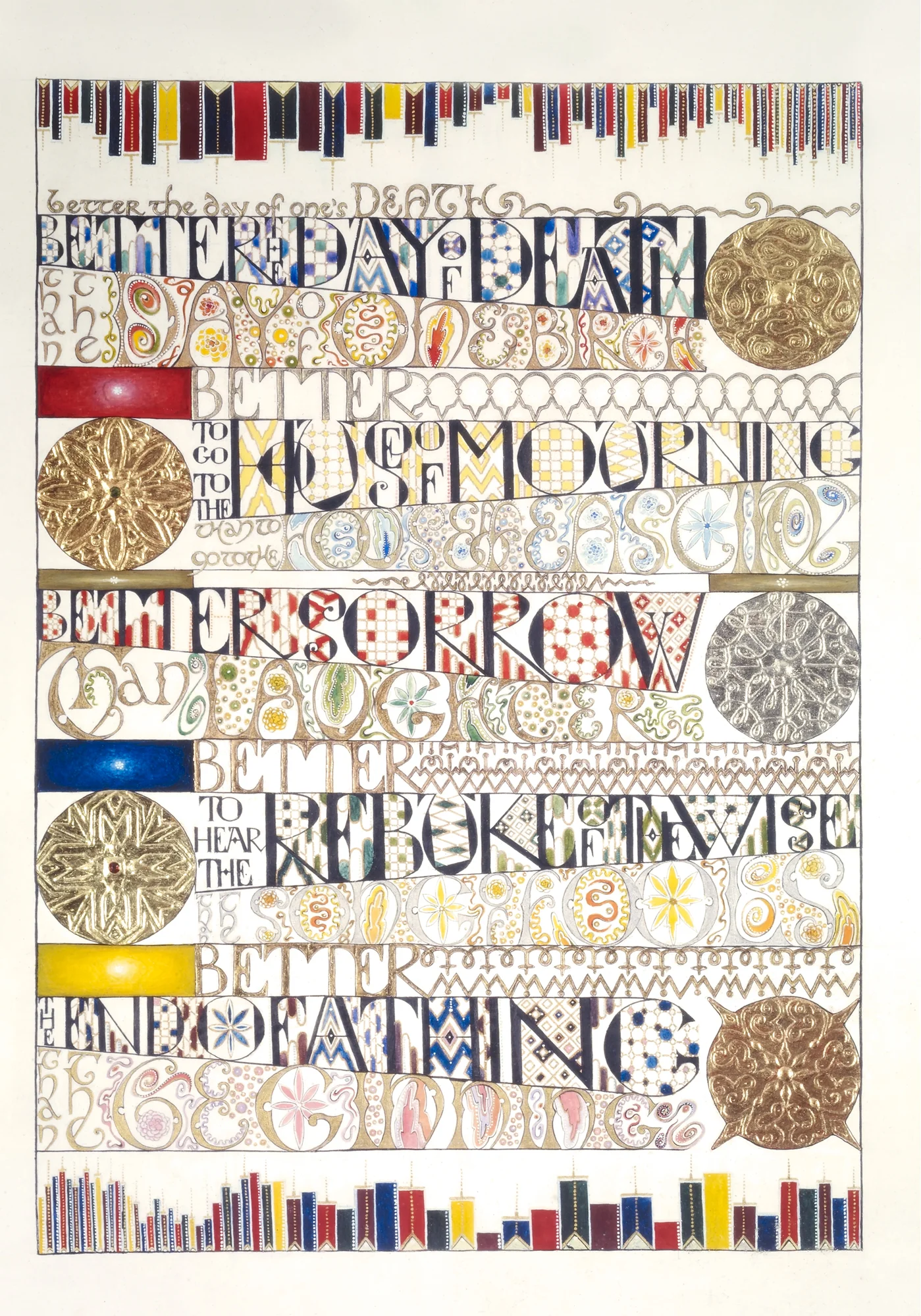 Ecclesiastes is an illuminated manuscript on 67 pages of vellum made with egg tempera, gold and silver leaf, precious and semi-precious stones. It was privately commissioned and took six years to make. It includes 34 illuminations, which you can see below, 32 pages of calligraphy and one title page. The size of each page is 28x42cm. Facsimile prints of the original manuscript available as single or double pages.