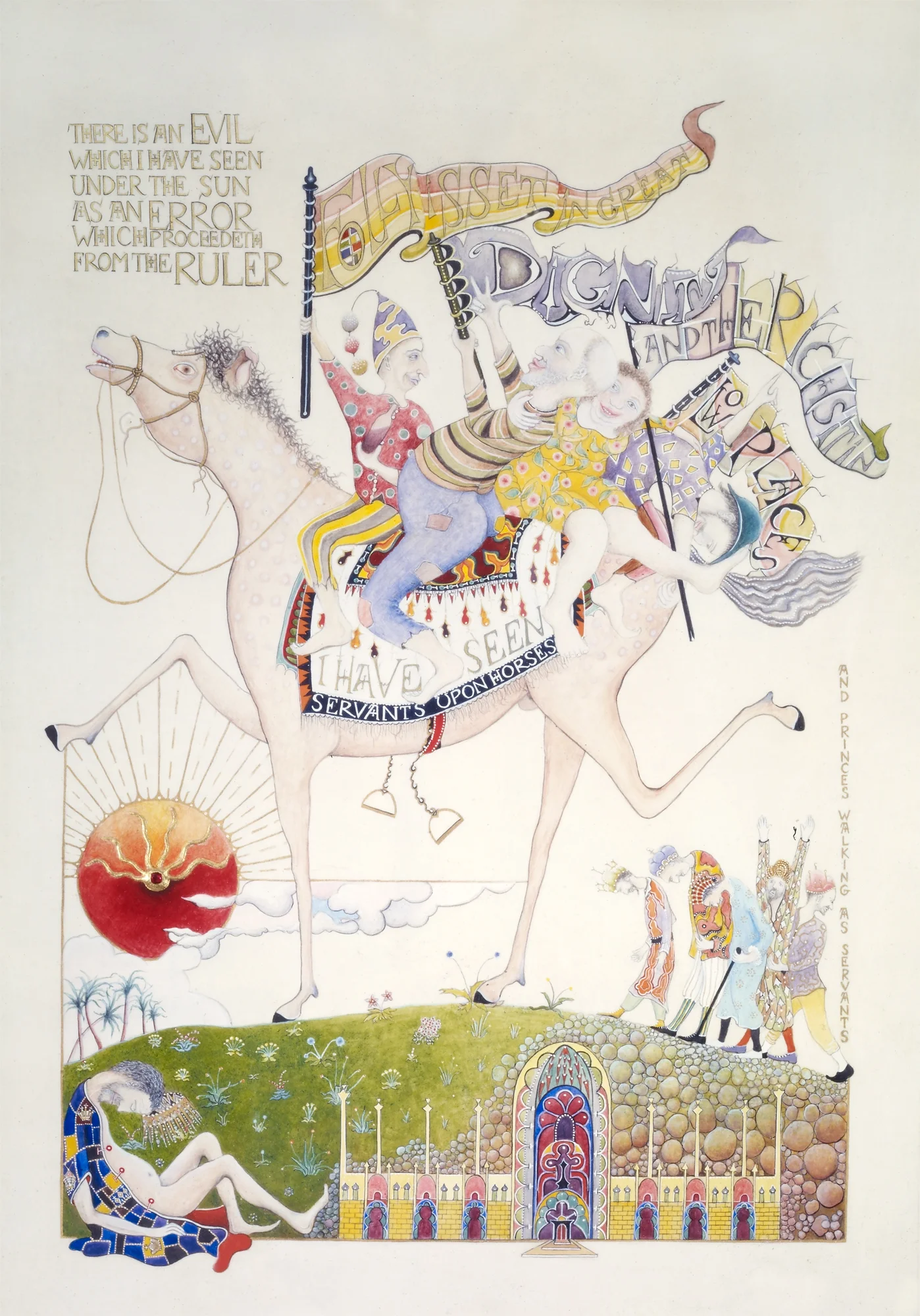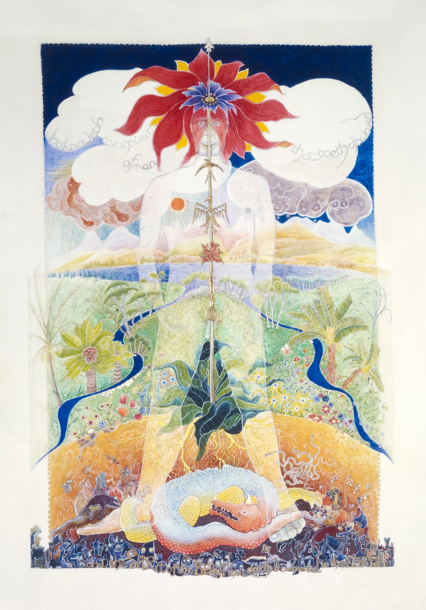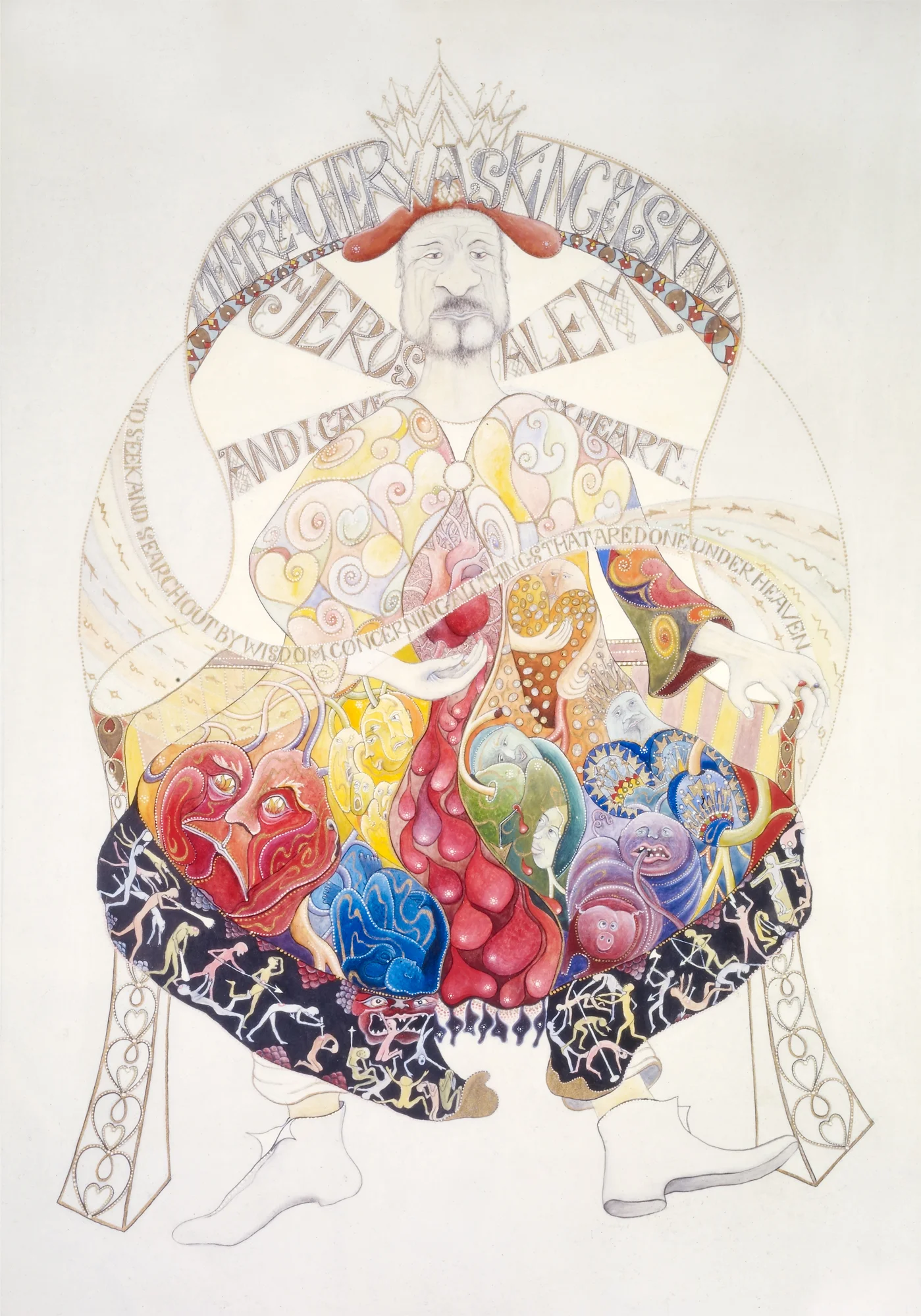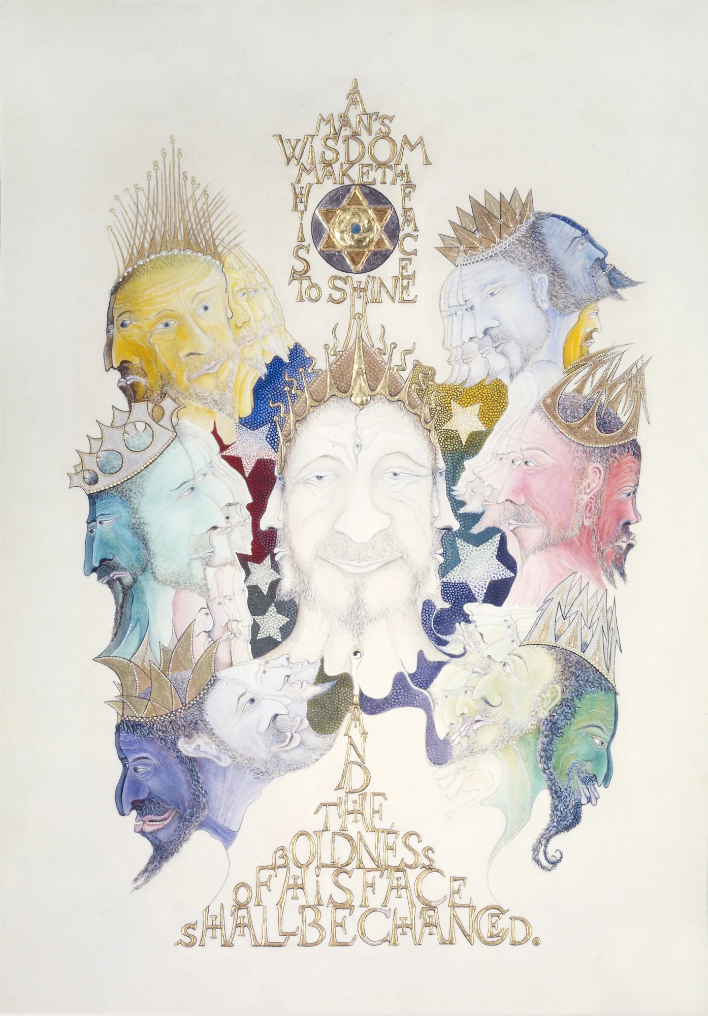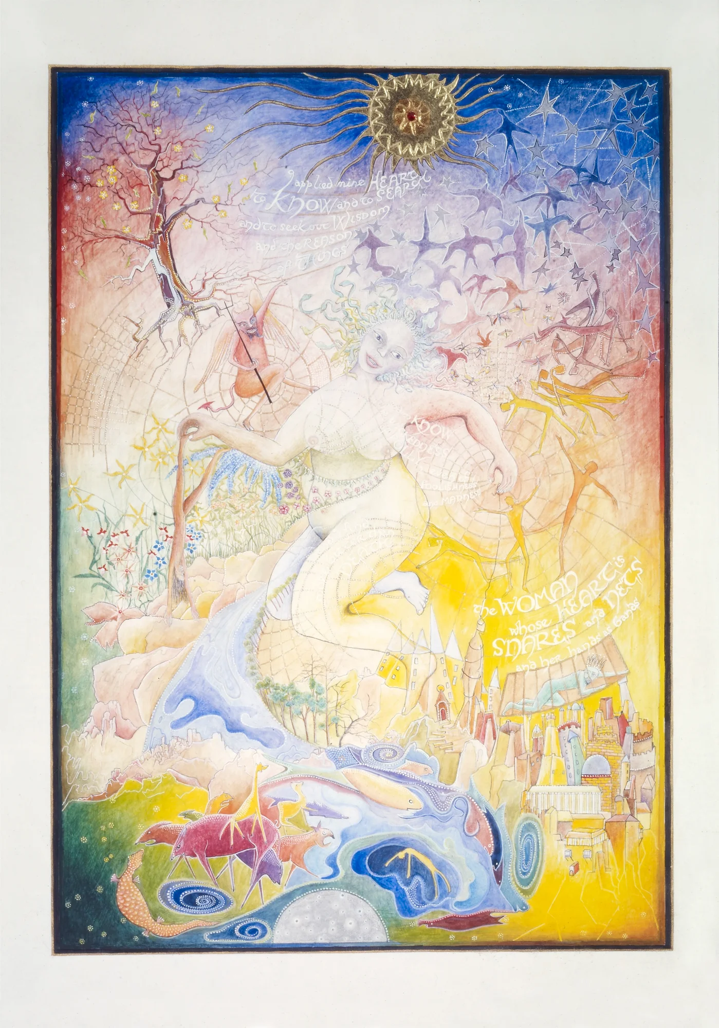 Ecclesiastes is an illuminated manuscript on 67 pages of vellum made with egg tempera, gold and silver leaf, precious and semi-precious stones. It was privately commissioned and took six years to make. It includes 34 illuminations, which you can see below, 32 pages of calligraphy and one title page. The size of each page is 28x42cm. Facsimile prints of the original manuscript available as single or double pages.